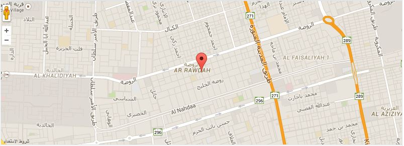 - من طريق المدينة النازل إلى شارع الروضة بإتجاه البحر (غرب) ، من أول إشارة مرور استدارة (يوتيرن) ، (الروضة سنتر ) والبوابة من الخلف ، مقابل مقهى ستاربكس. الدور الثاني